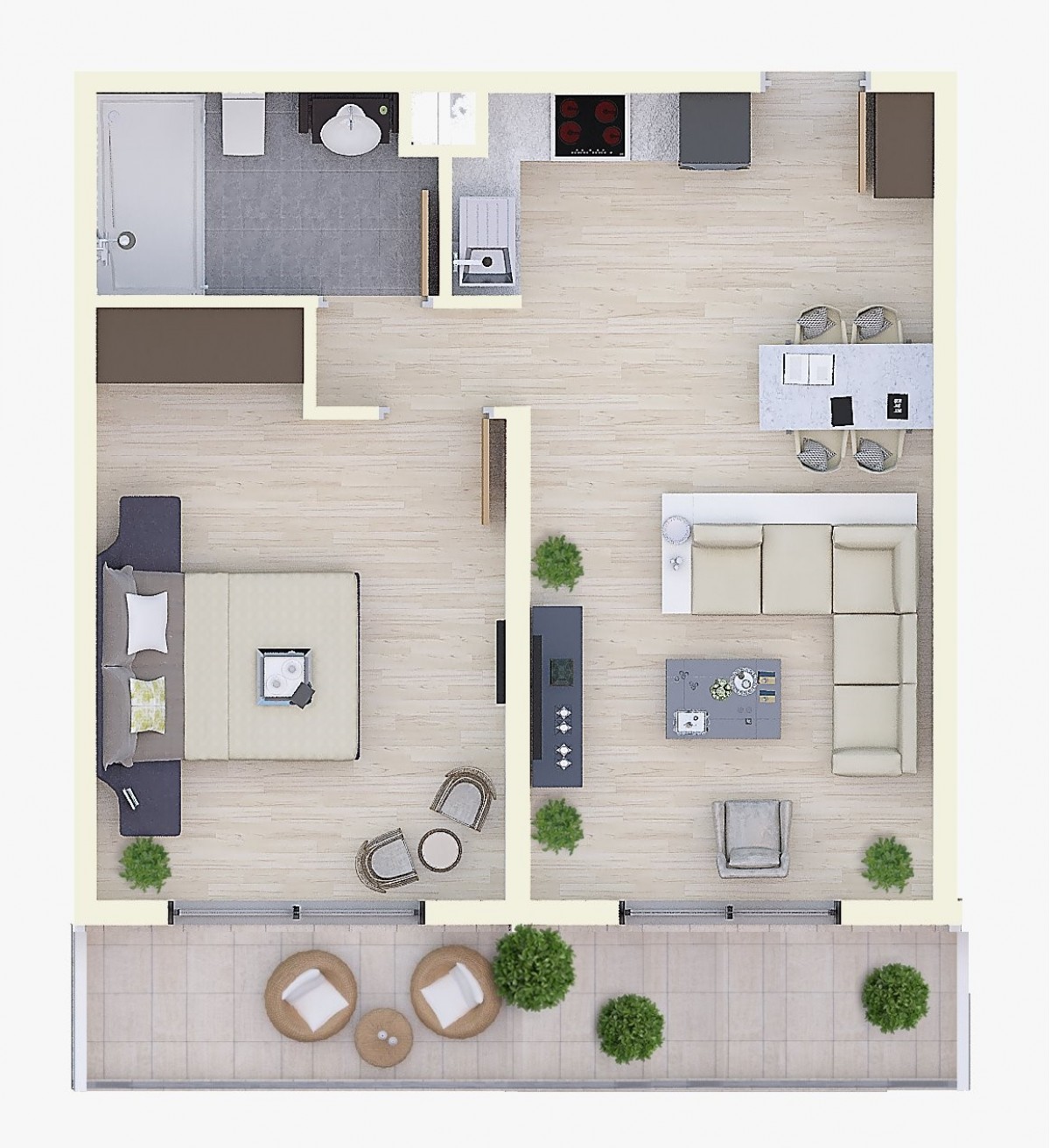 Апартаменты 1+1 состоят из: