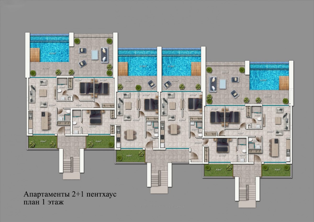 На апартаменты предоставляется беспроцентная рассрочка. В цену квартир включена полная отделка, встроенная мебель (все спальни оборудованы встроенными шкафами, на кухне предусмотрена встроенная кухня), сантехника. Установлены система давления воды, окна с двойным стеклопакетом, межкомнатные двери, теплый пол в ванной, подвесной потолок с подсветкой. Проект выполнен в современном стиле, используются материалы высокого качества для комфортной и современной жизни на побережье.