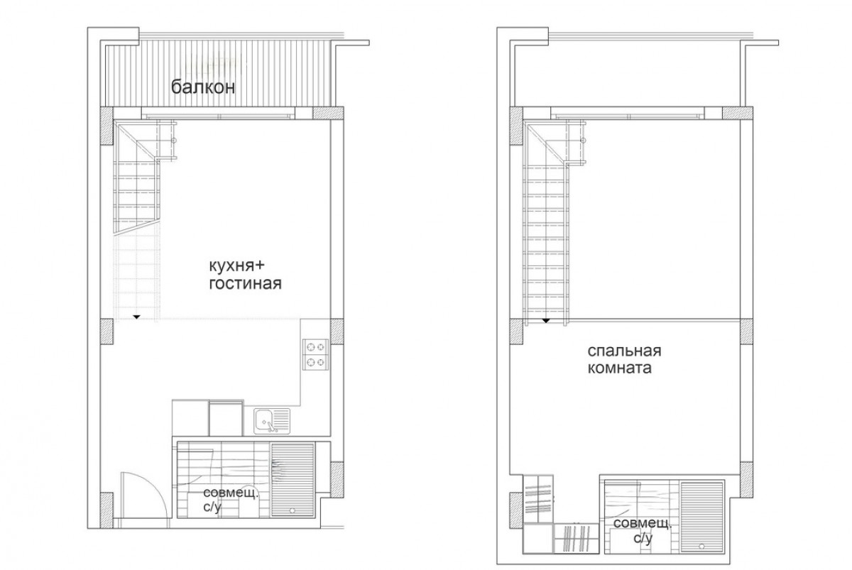 Апартаменты 1+1 дуплекс пентхаус состоят из: