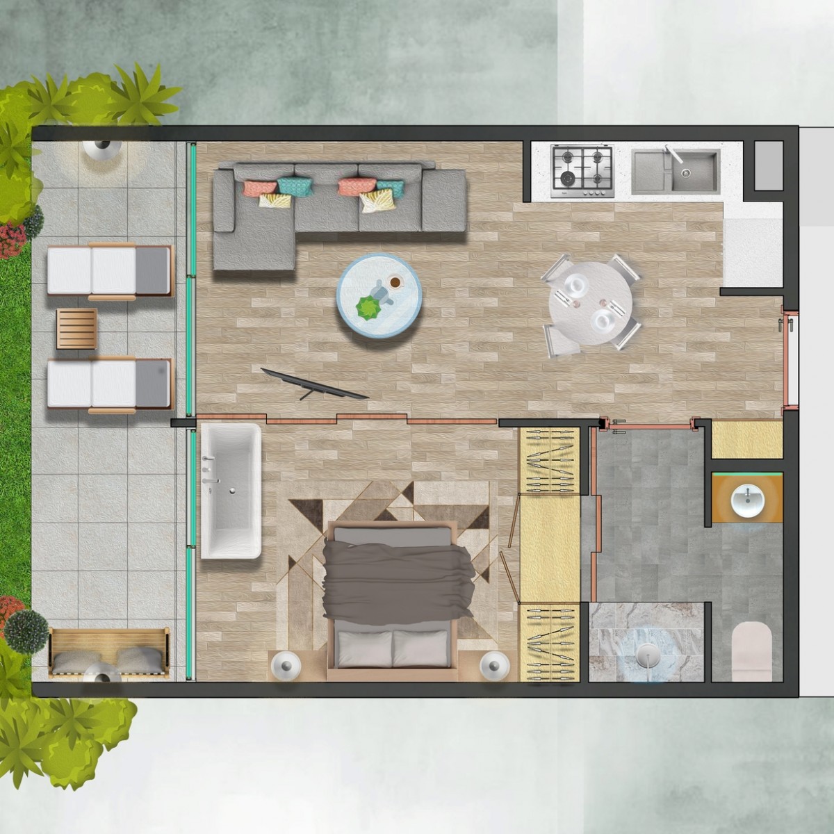 На апартаменты предоставляется беспроцентная рассрочка. В цену объектов недвижимости включена полная отделка, сантехника, напольное покрытие, встроенная мебель (все спальни оборудованы встроенными шкафами, на кухне предусмотрена встроенная кухня). Установлены окна с двойным остеклением, система кондиционирования. В проекте предусмотрена интернет-инфраструктура и спутниковая инфраструктура.