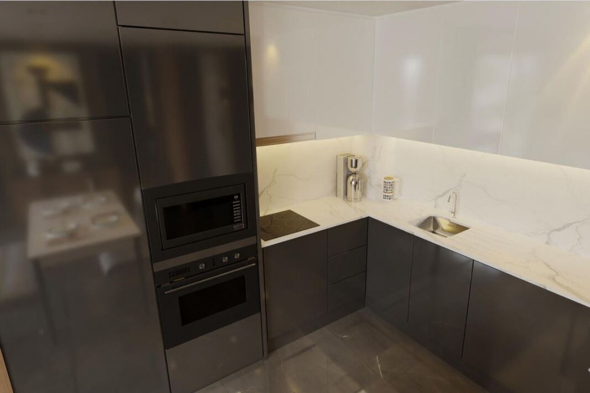 Предоставляется беспроцентная рассрочка. В цену включены дизайнерские интерьеры и первоклассные строительные материалы, полная отделка, встроенная мебель, сантехника, крупногабаритная фарфоровая керамика, встроенные душевые системы, душевые кабины, линейные трапы из нержавеющей стали, гранитные столешницы и роскошные альтернативы деревянным покрытиям. С террасы открывается 180-градусный вид на море.