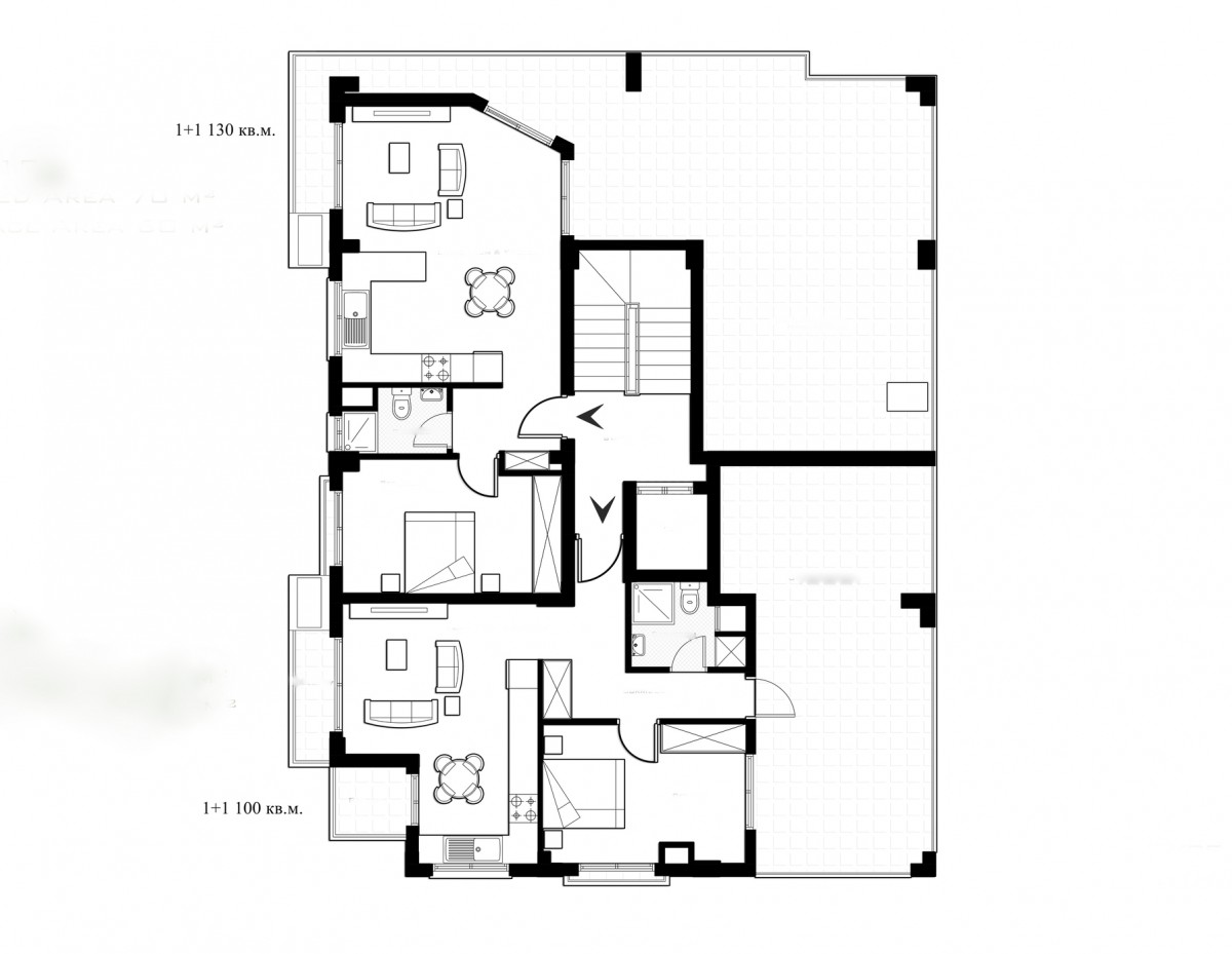 Апартаменты 1+1 состоят из: