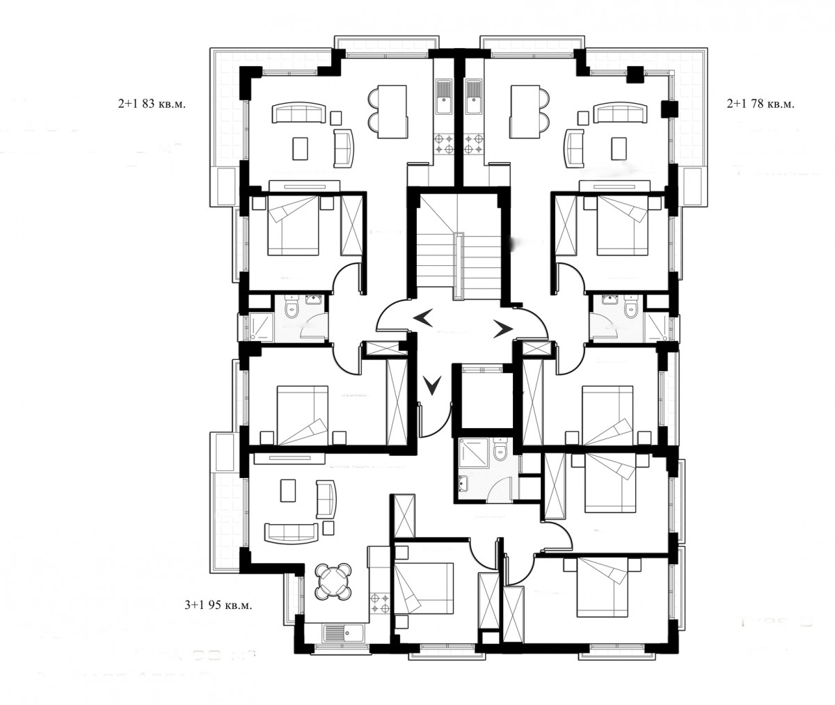 Апартаменты 3+1 состоят из: