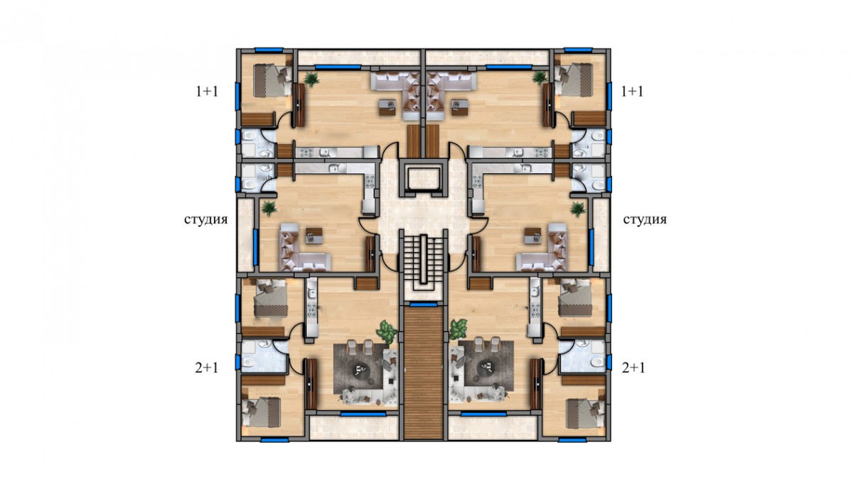 На апартаменты предоставляется беспроцентная рассрочка. В цену включена полная отделка, напольное покрытие из плитки, встроенная кухня и шкафы в спальных компанах, оборудованный санузел с сантехникой. Установлены система давления воды, система кондиционирования, центральное спутниковое телевидение, центральная интернет-система, окна с двойным стеклопакетом, межкомнатные двери. Дом оборудован лифтом и парковочными местами, установлена система видеонаблюдения.