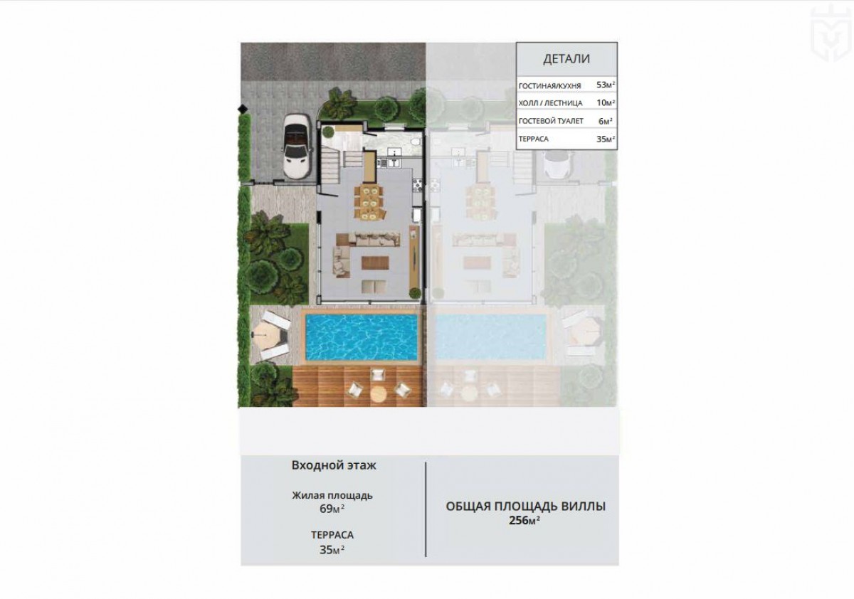 Проект представлен современными двухэтажными виллами 3+1 с персональными бассейнами, участками и просторными террасами на крыше. С террас открывается панорамный вид на море и пристань. Комплекс расположен на площади в 14 860 кв.м., 9 500 кв.м. из которых занимают зеленые насаждения, имеет закрытую территорию со шлагбаумом, парковки, подъездные дороги.