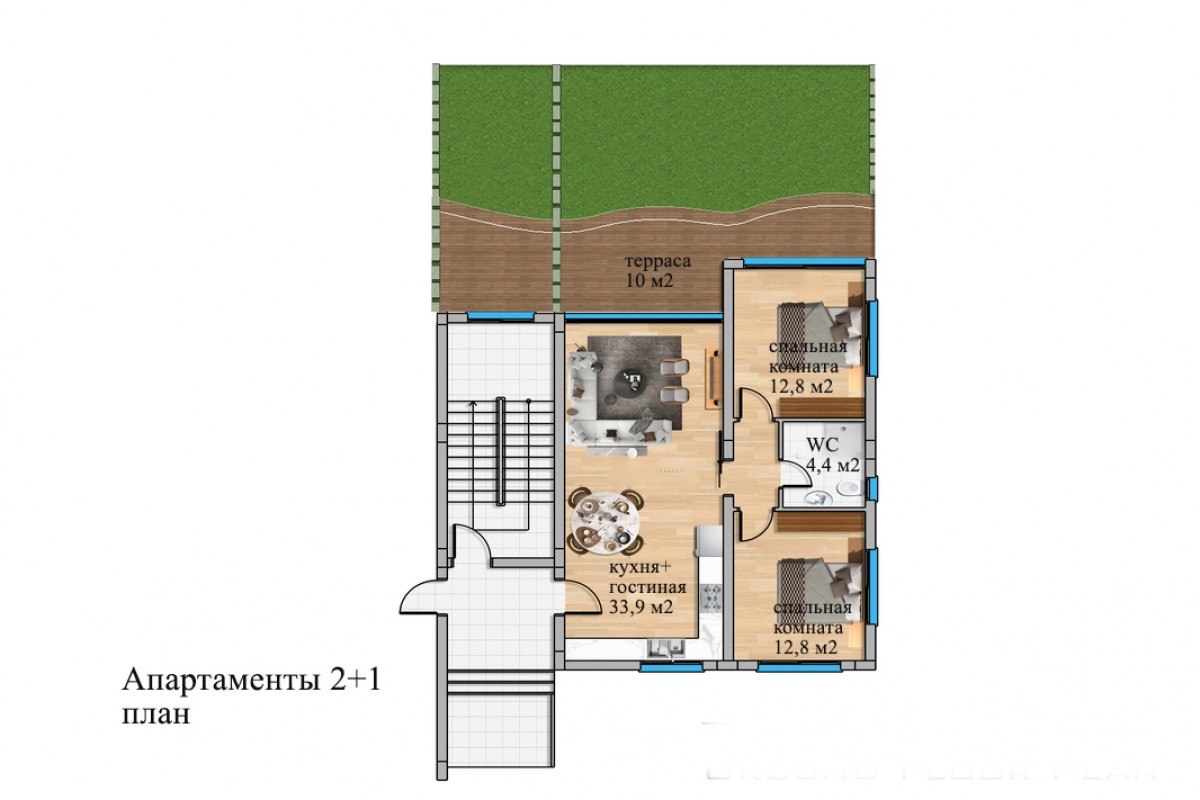 Апартаменты 2+1 состоят из: