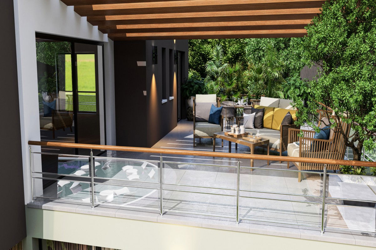 Квартиры на втором этаже имеют просторные террасы, куда вы можете выйти как из гостиной, так и из спальной комнаты. В проекте предусмотрены подъездные дороги, парковка, детская площадка, обширное озеленение территории и ландшафтный дизайн, общий бассейн и зоны отдыха вокруг него, система видеонаблюдения, резервный электрогенератор.