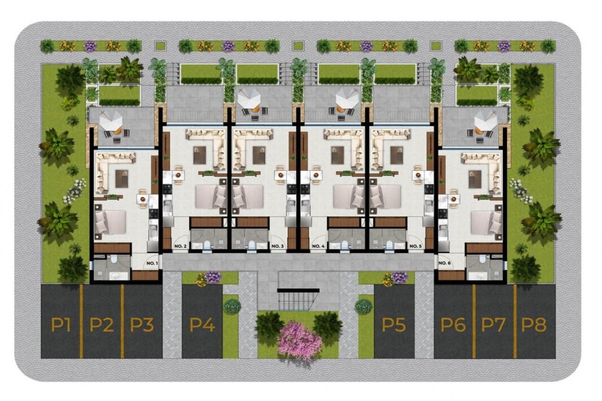 Новый проект ID 229 располагается на северном побережье в 350 метрах от оборудованного пляжа на границе районов Эсентепе и Татлысу. Инфраструктура комплекса включает общие бассейны вдоль каждого жилого модуля с зонами отдыха и баром, СПА центр, сауну, тренажерный зал, ресторан, открытую и закрытую детскую игровую площадку, кинотеатр под открытым небом, открытый амфитеатр, зоны для барбекю, площадки для занятий йогой на открытом воздухе, медицинский кабинет, дорожки для прогулок, парковочные места. Территория облагорожена ландшафтным дизайном. Комплекс обслуживает управляющая компания.