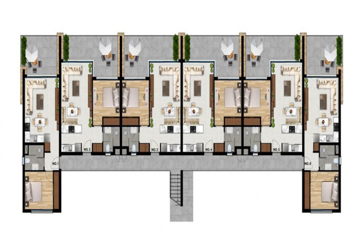 В стоимость входит полная отделка, встроенная мебель (все спальни оборудованы встроенными шкафами, на кухне предусмотрена встроенная кухня), напольное покрытие, сантехника, полностью укомплектованные ванные комнаты. Установлены окна с двойным остеклением, межкомнатные и входные двери, инфраструктура для системы отопления, вентиляции и кондиционирования VRF, спутниковая, интернет- и телефонная инфраструктура. Апартаменты имеют террасу на крыше с оборудованной зоной барбекю и мини-кухней. С террас открывается прямой панорамный вид на море, есть возможность установки джакузи или душа.