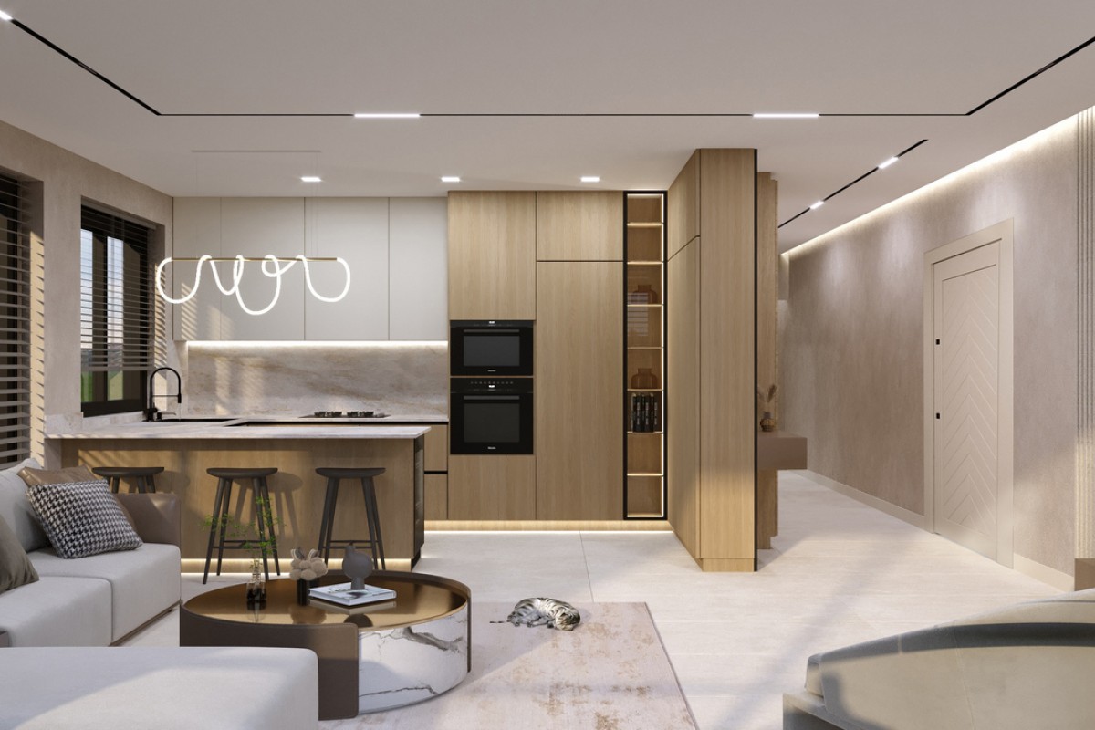 При покупке предоставляется беспроцентная рассрочка. В цену включена полная отделка, встроенная мебель (встроенные шкафы в спальных комнатах и встроенная кухня), обустроенные санузлы с сантехникой, кондиционеры в каждой комнате. Установлены инфраструктура для скоростного интернета и спутникового TV, окна с двойным стеклопакетом, входные и межкомнатные двери, тепло- и звукоизоляция.