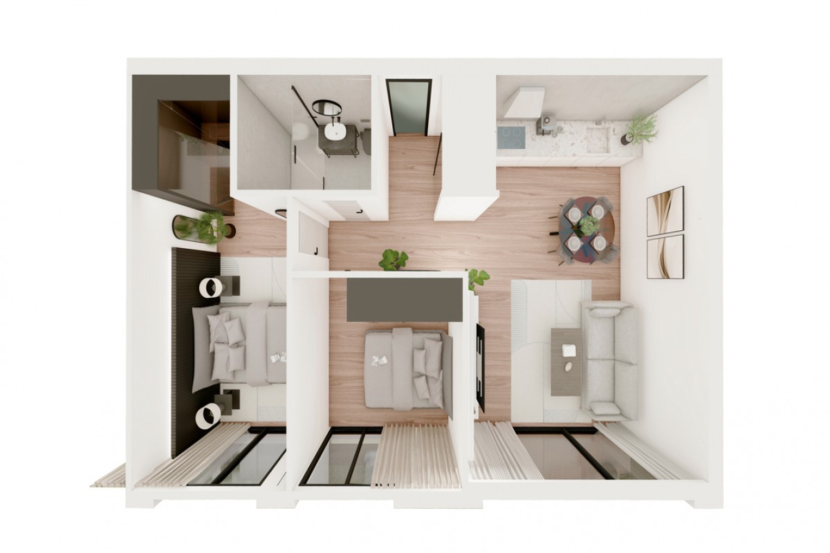 В цену включена полная отделка, встроенная мебель (встроенные шкафы в спальных комнатах и встроенная кухня), сантехника, душевая кабина, напольное покрытие во всех комнатах, окна с двойным остеклением, инфраструктура и агрегаты кондиционеров, инфраструктура центральных спутниковых и интернет-систем др. Благодаря окнам в пол, в квартирах много света и солнца. Для каждой квартиры предусмотрено парковочное место. В домах есть лифт, автоматическое освещение лестничной площадки, датчики дыма.