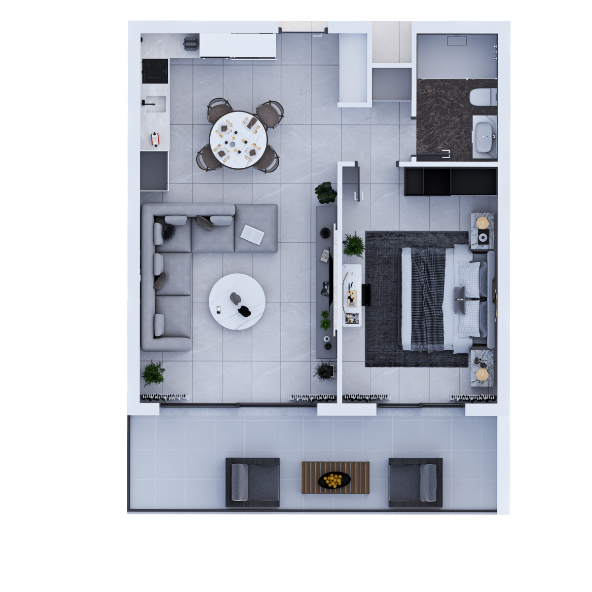 Апартаменты 1+1 состоят из: