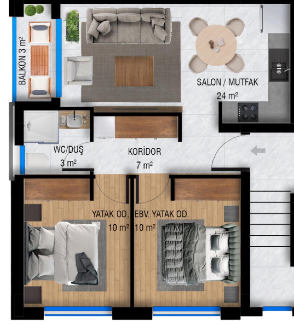 Проект представлен жилым зданием в 5 этажей с апартаментами 2+1 на 1-3 этажах, 3+1 на 4 этаже и одним пентхаусом с 3мя спальнями на 5 этаже – всего 12 квартир. Квартиры имеют балконы и террасы с отличным видом на город и окрестности. Дом оборудован лифтом, установлены стеклопакеты, домофон. В проекте предусмотрена паркинг, интернет-инфраструктура и спутниковая инфраструктура.