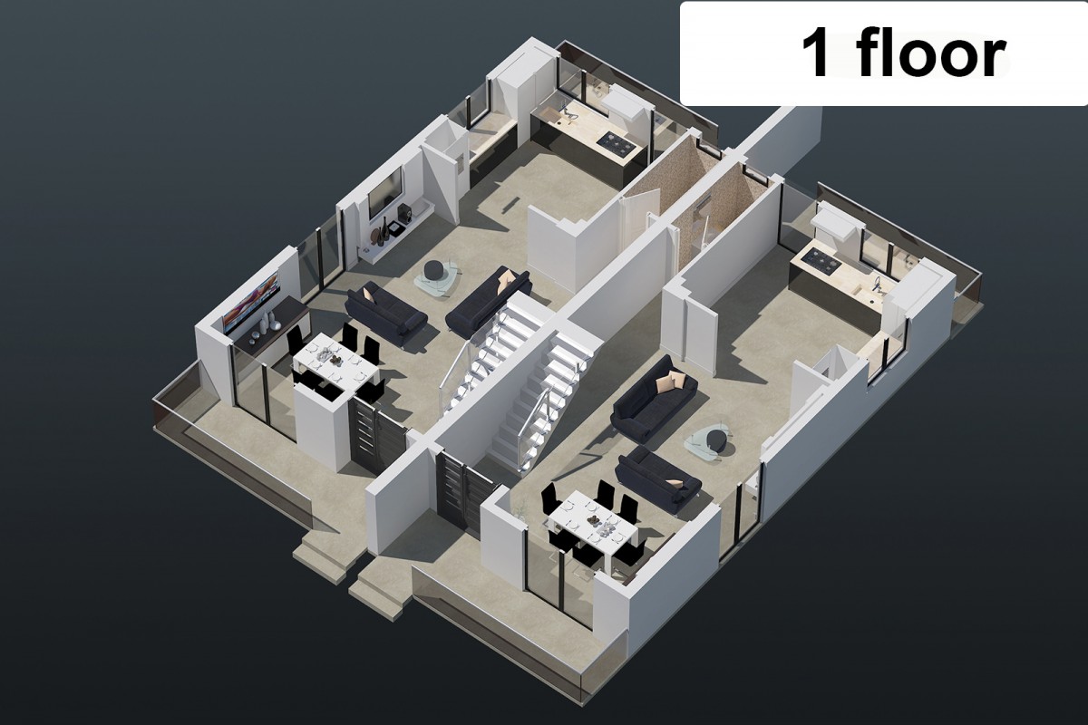 Блок таунхаусов - один из 10 вариантов зданий, представленных в комплексе ID 023. Комплекс представляет собой крупномасштабный проект, расположенный на 36 га земли и состоящий из 3 этапов строительства. Развитая инфраструктура, активные центры и 1,122 единиц жилья делают ID 023 крупнейшим проектом, не имеющим аналогов на Северном Кипре. Есть варианты квартир с видом на море, на горы.