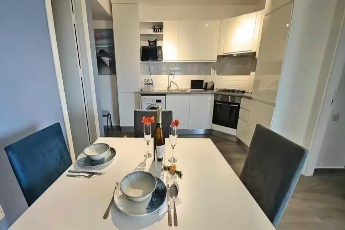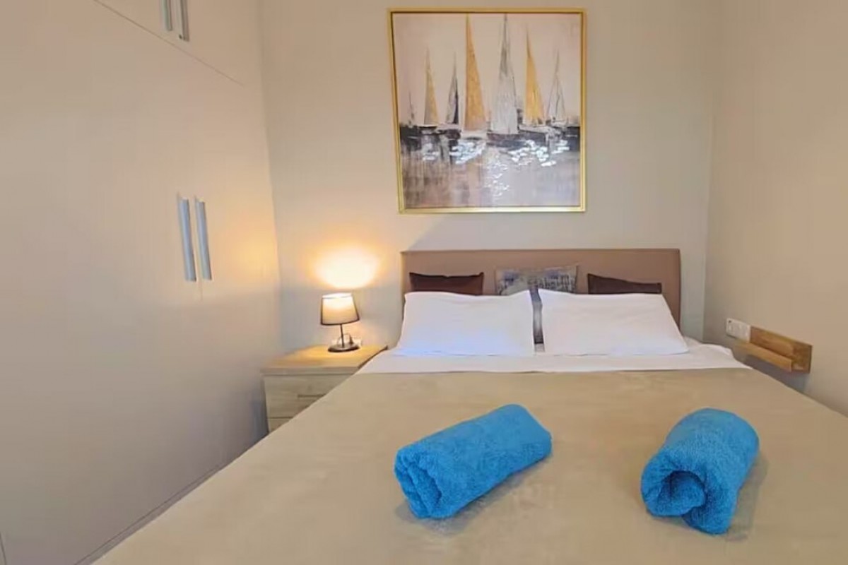- мебель: кухонный стол с 4-мя стульями, диванный уголок, раскладывающийся в двуспальное место, журнальный стол, двуспальная кровать с прикроватными тумбочками.