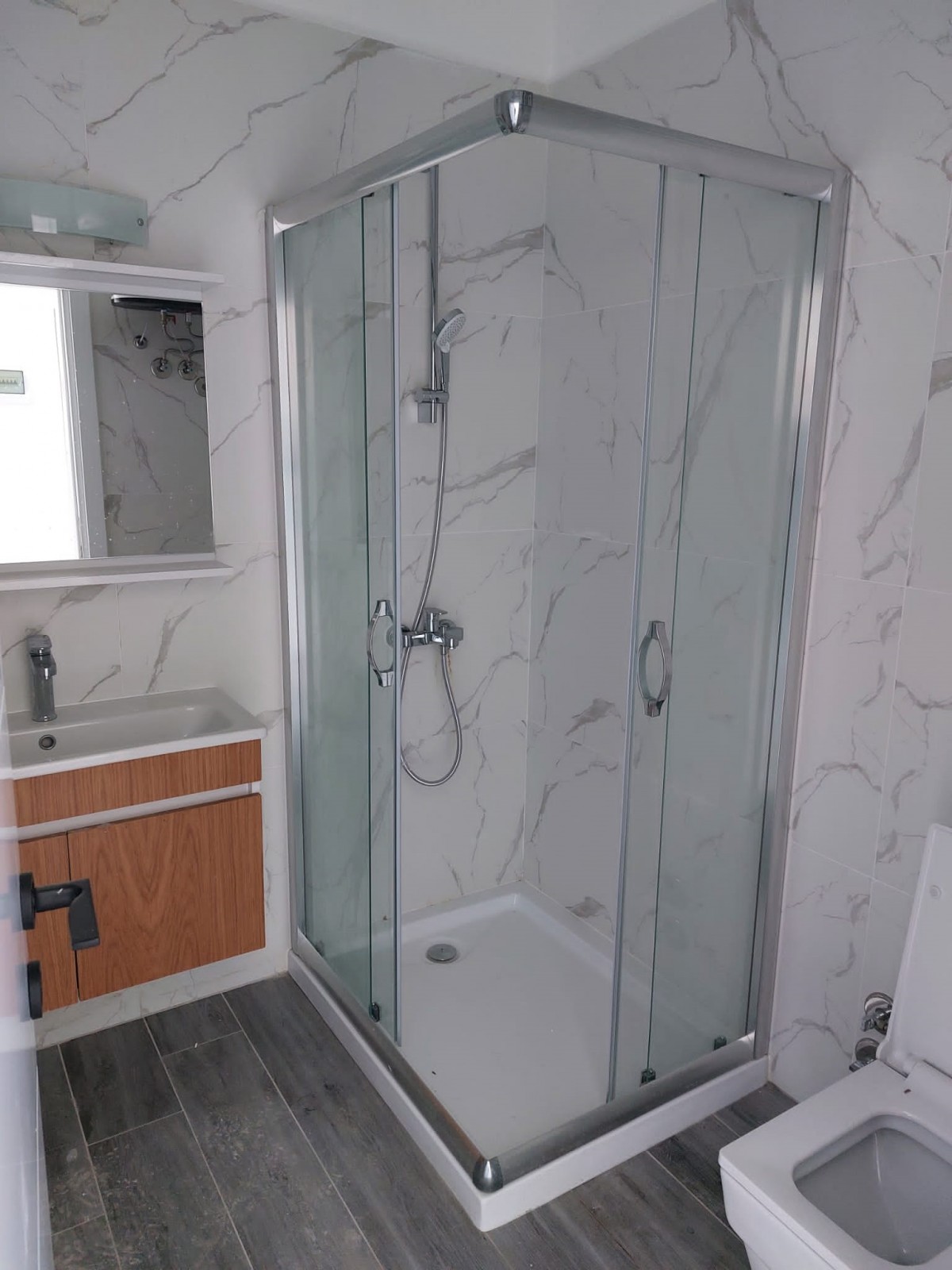 Квартира полностью готова к проживанию. С террасы открывает вид на горы и комплекс.