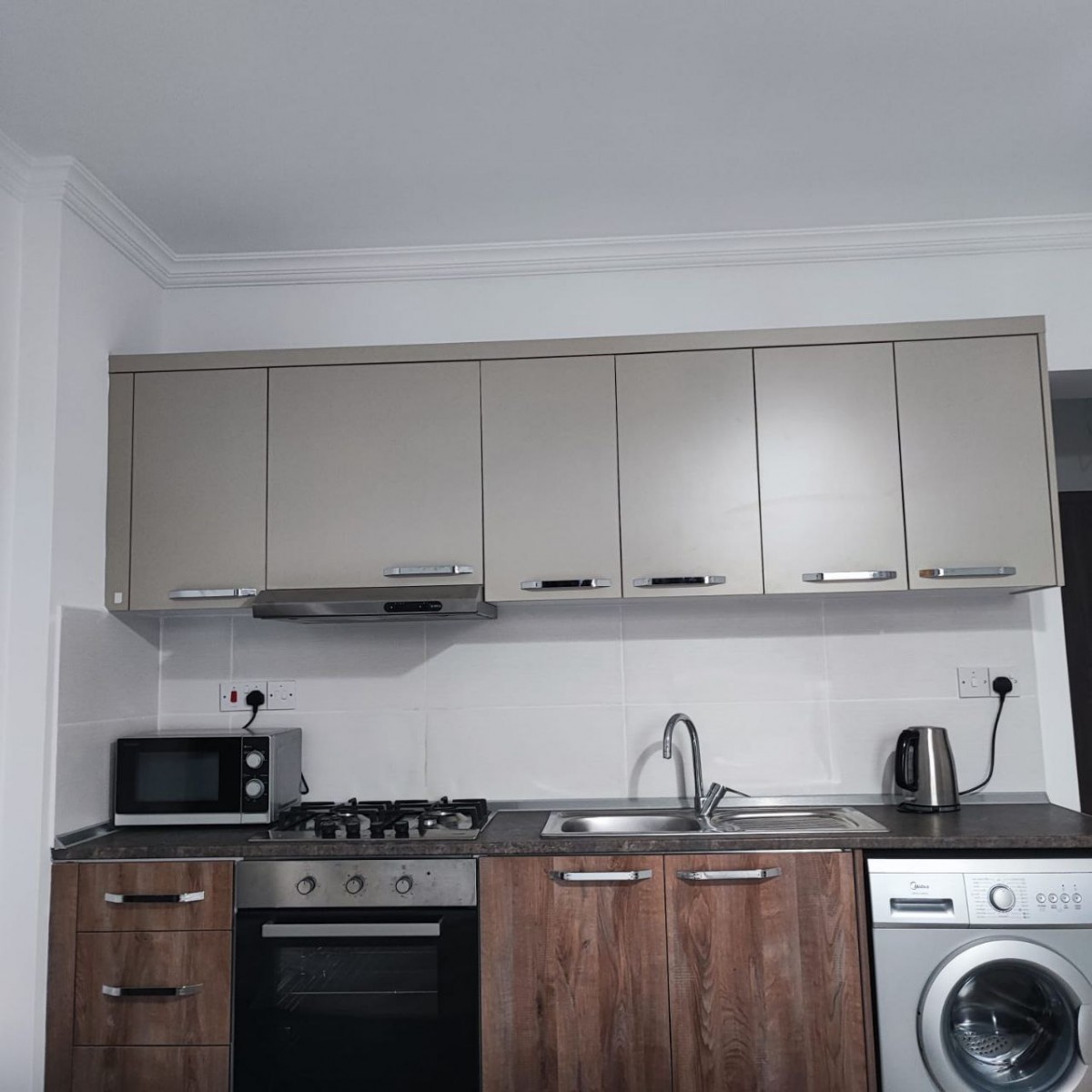 - техника: газовая панель, духовой шкаф, холодильник, кондиционер, стиральная машина, телевизор (смарт ТВ), вытяжка.
